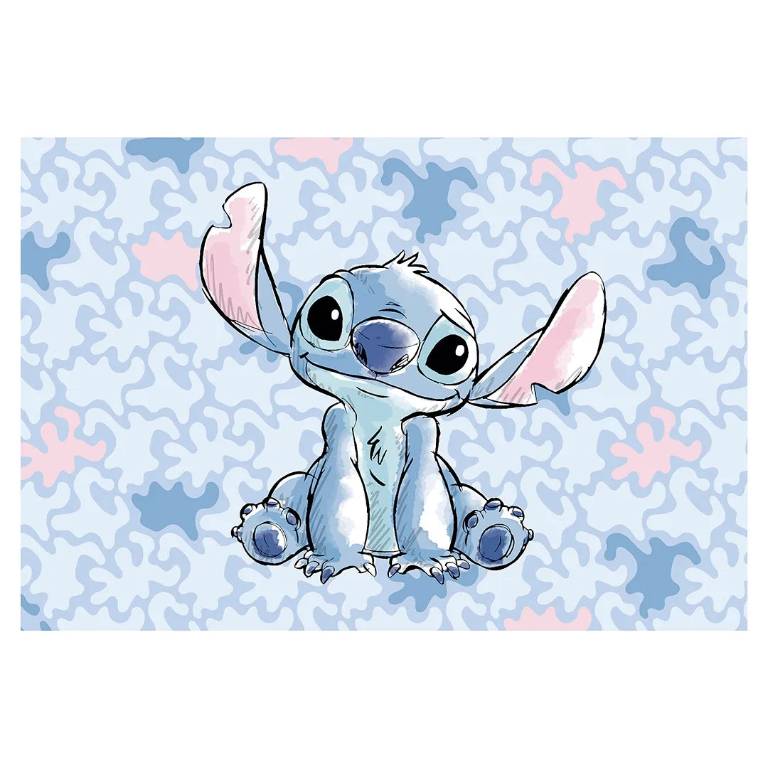 - Estampa divertida do personagem Stitch da Disney em tons de azul e rosa;