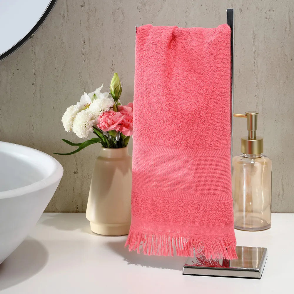 Toalha de mão ideal para bordar ponto cruz ou a máquina com 29 pontos na altura da barra, confeccionada em felpa 100% algodão, com 260 g/m². Possui acabamento em franjas. Tamanho: 25cmx36cm.